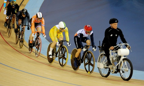 Cycling – “Victoria Pendleton follows the derny in the women’s Keirin heats at the Velodrome. Pendleton went through first.” What the heck is a derny?
