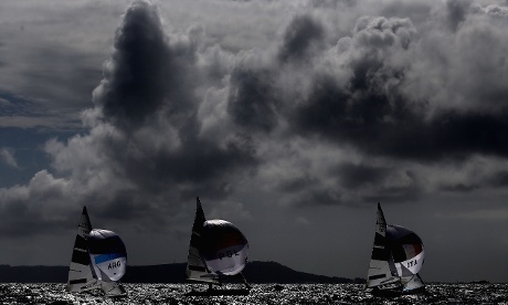 470 Women’s Class Sailing – Dramatic skies are pictured over Weymouth Harbour as competition begins in the 470 Women’s Class Sailing.