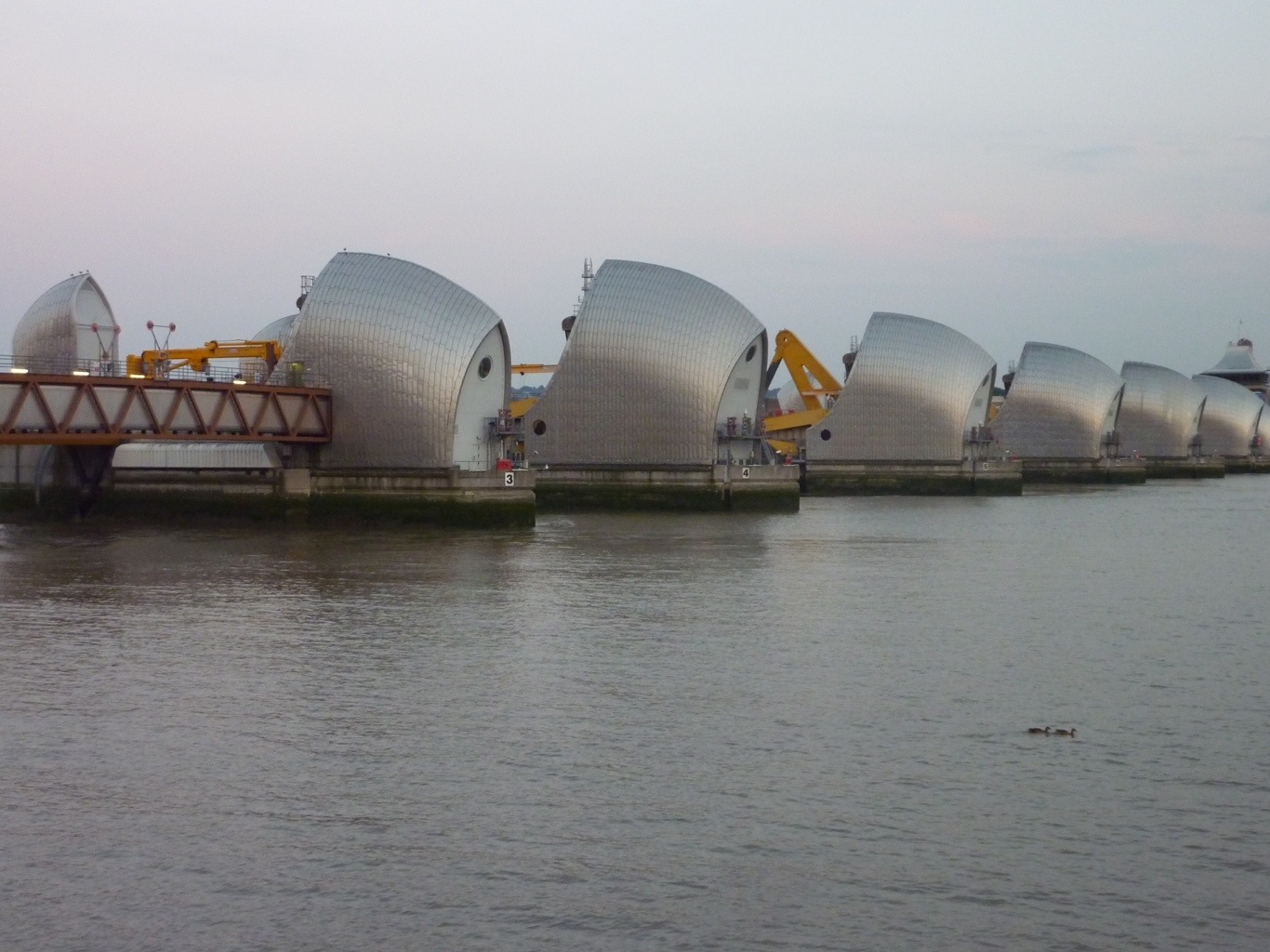 Thames Barriers, not too many tourists down here. black security guy wanted to close up. I told him I came all the way from nyc to see these things. he said: “ok. obama is my cousin”. good man.